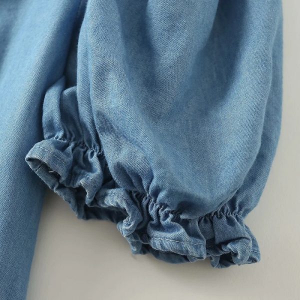Summer Women V Neck Single Breasted Side Slit Denim Midi Dress Female Puff Sleeve Clothes Leisure Lady Loose Vestido D7996
